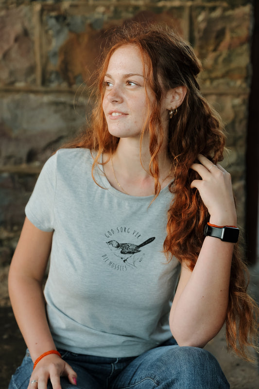 God sorg vir die Mossies - Christian Ladies t-shirt (Grey Melange)