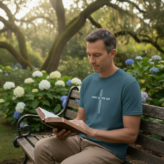 Come as you are – Premium Christian T shirt (Petrol Melange)