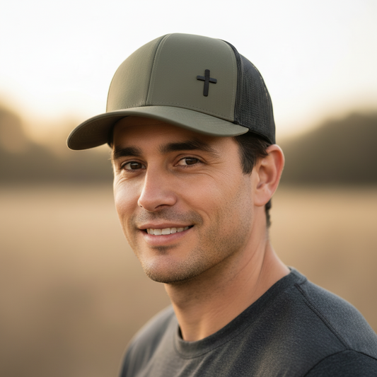 Cross – Christian Trucker Cap (Khaki & Black)