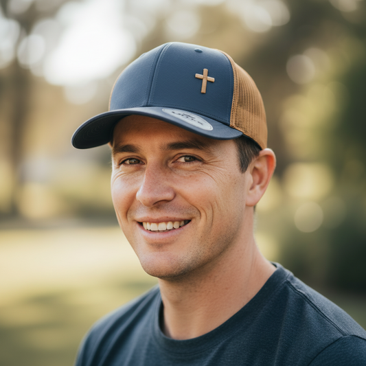 Cross – Christian Trucker Cap (Blue &Tan)