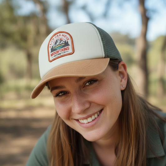 Faith Moves Mountains - Christian Cap (Stone & Khaki)
