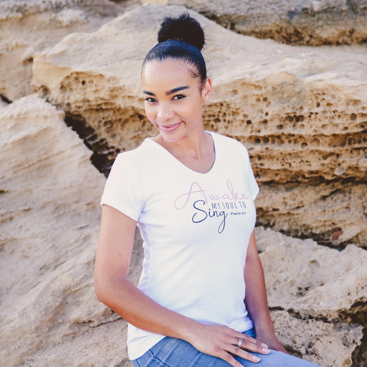 Awake my Soul – Christian Ladies T shirt (White)
