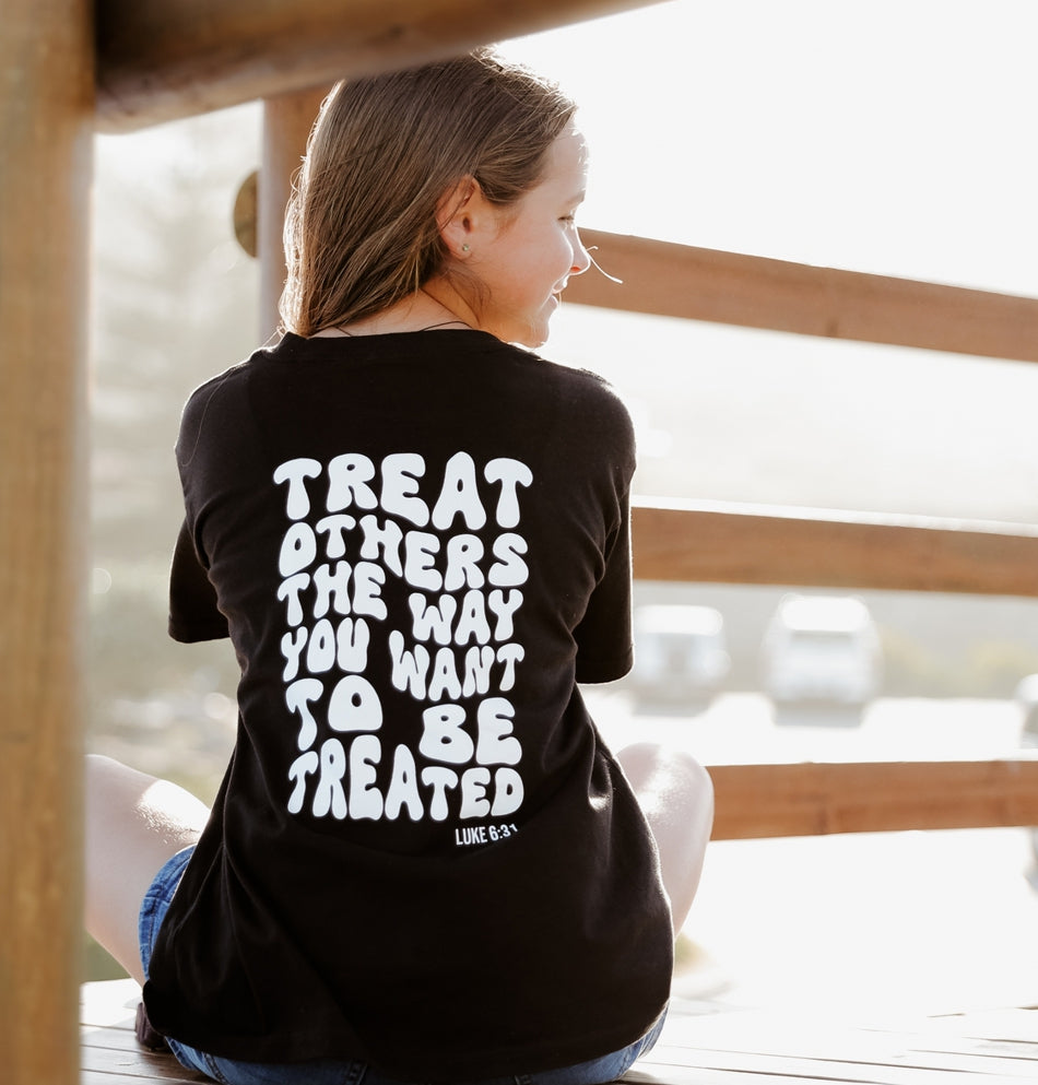 Make a bold statement of faith and character with our "Be Kind" Christian kids' t-shirt in classic black! This stylish shirt features the encouraging message of the Golden Rule, reminding your child to shine their light and spread kindness everywhere they go.