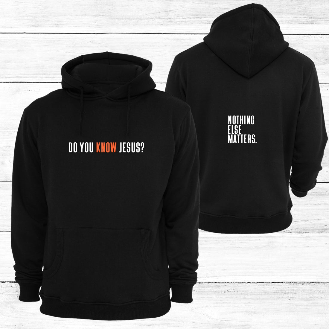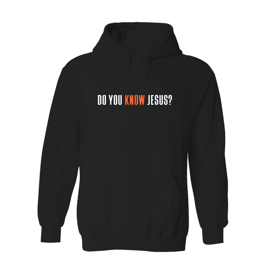 Discover our Do You Know Jesus Christian Hoodie, crafted from a soft, high-quality poly-cotton blend and featuring the impactful phrase “Do you know Jesus” screen printed, for lasting durability. This hoodie offers cozy comfort while helping you share a meaningful message. Wear your faith with confidence and style.