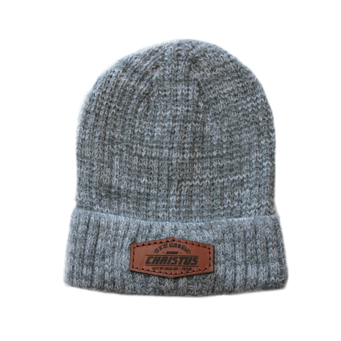 Wear your faith and spread the good news of Jesus with this Ek is tot alles in staat deur Christus Christian Beanie. Click "add to basket" to place your order and add it to your Christian Wardrobe or buy it for someone special. The words Ek is tot alles in staat deur Christus are laser engraved on a leather badge on a Grey Melange colour Rib Knit Cuffed Beanie and is available in one-size-fits all.