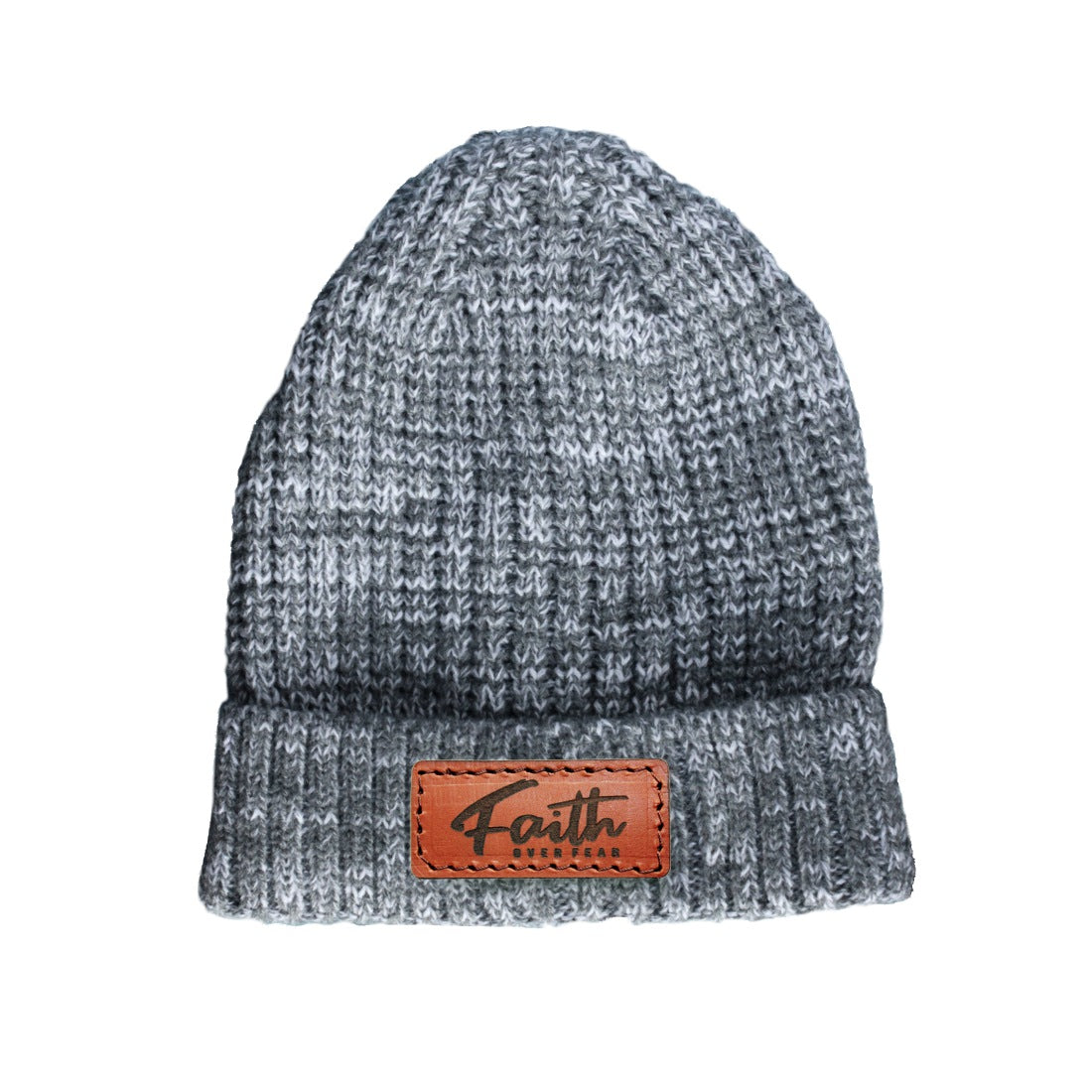 Embrace your faith with our Grey Melange Christian Beanie. The stylish melange blend offers a contemporary look, while the hand-stitched leather badge engraved with "faith over fear" carries a powerful message.