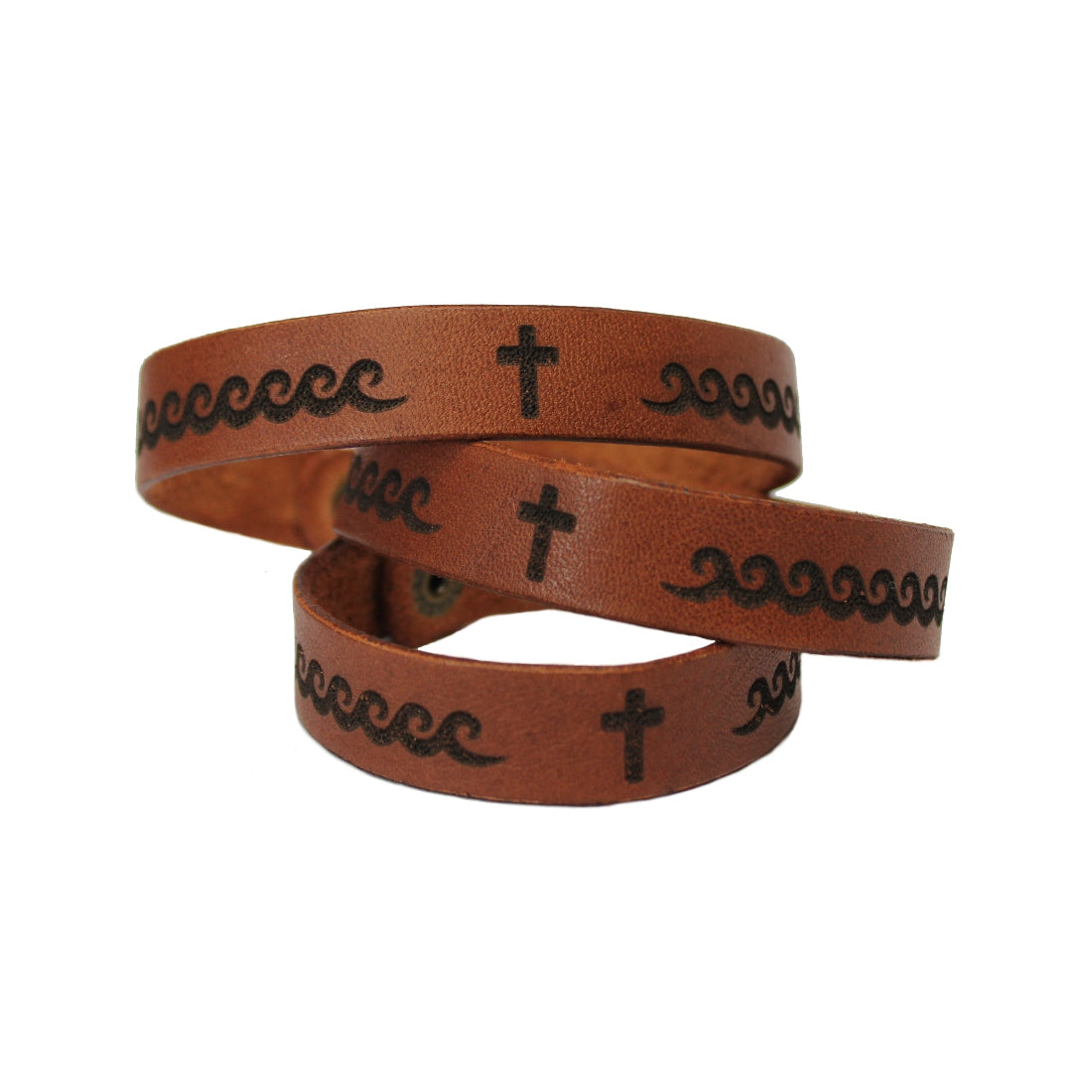 There is peace and comfort in the midst of life's storms! Buy this leather wristband, engraved with the Cross and waves as a reminder of the One who calms the storm . Laser engraved on an adjustable leather band, it is stylish, durable, and comes in 3 sizes. Click "add to basket" now for a unique Christian gift or add it to your own accessories! Delivery across South Africa.