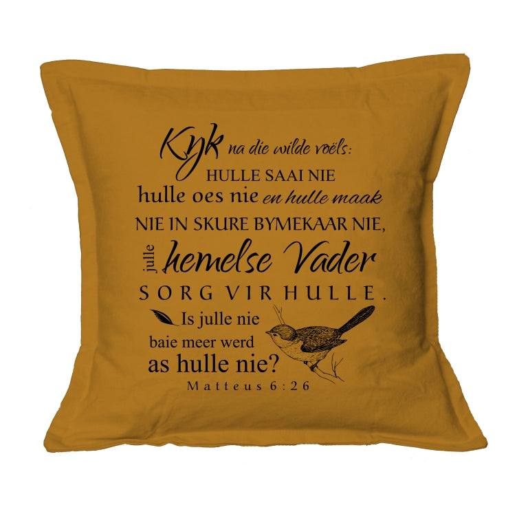 Kyk na die Wilde voels - Christian Cushion Cover (Mustard)