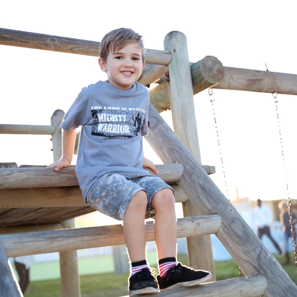 Mighty Warrior – Christian Kids T shirt (Grey)