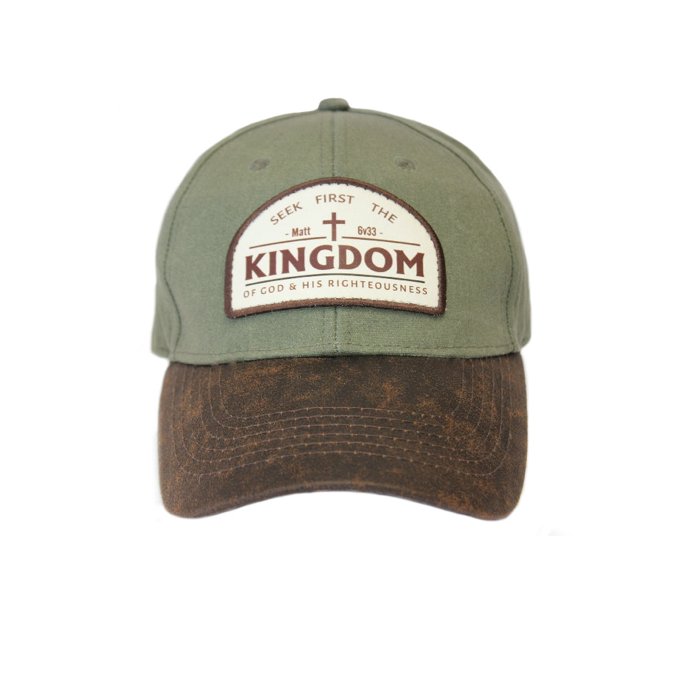 Put your faith front and centre with the "Seek First the Kingdom" cap — inspired by Matthew 6:33. This two-tone cap features a rugged olive look and a weathered brown brim for a timeless, worn-in look that gets better with age.