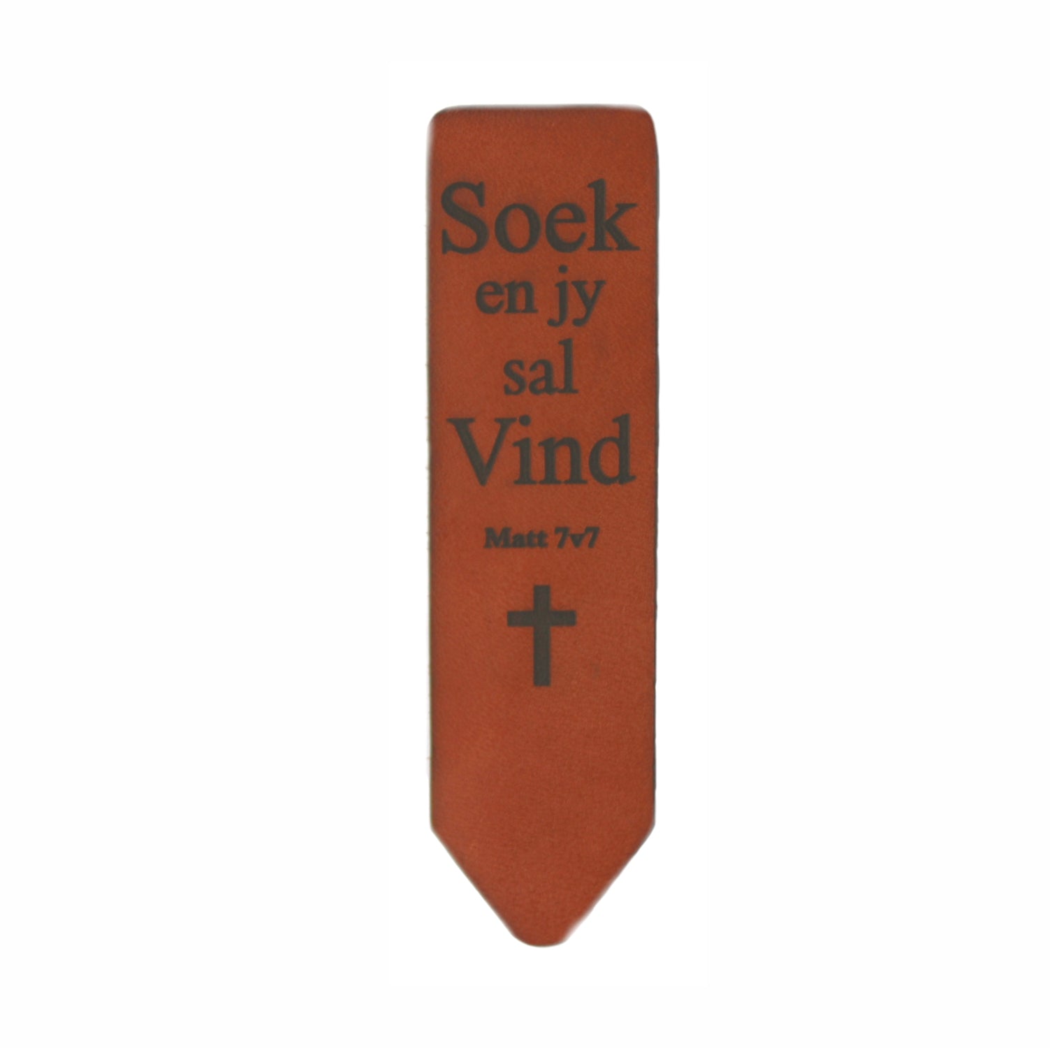 Add some style to your reading experience with our elegant, genuine leather bookmark. Engraved with the inspiring message "Soek en jy sal vind", this bookmark is the perfect companion for your Bible or favorite book.