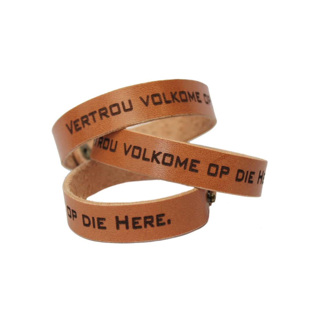 Spread love and faith with our "Vertrou volkome op die Here" Christian Leather Wristband. Laser engraved on adjustable leather, this inspiring message is perfect for daily wear or gifting. Available in 3 sizes, click "add to basket" and add this to your Christian accessories or surprise someone with a unique Christian gift.