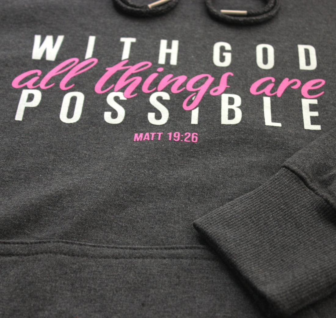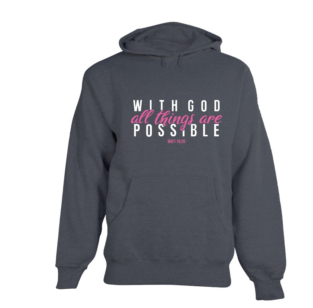 With God all things are possible - Christian Hoodie (Charcoal-Pink)